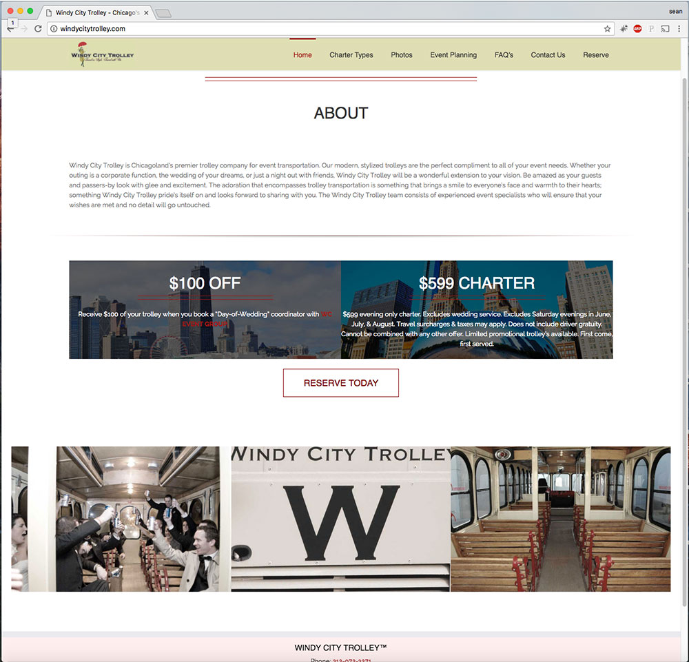 windycitytrolley.comadmin2018-09-01T04:06:55+00:00 Windy City Trolley WebsiteI redesigned this website under an internship at StickOutSocial. StickOutSocial is a web design and development agency in Chicago. WindyCityTrolley Project Details Skills Needed: CSSHTML5JQueryWordpress Categories: Web Related Projects Southwest Getaways Coles Flooring Ad Project Wheel Spin Email Collection